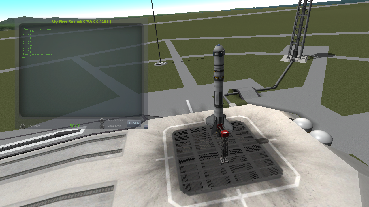 You’ll note that what you’ve done is switch to the local volume (1) and then copy the program from the archive (0) to the local volume (1) and then run it from the local volume. Technically you didn’t need to do this. You could have just run it directly from the archive. For those looking at the KSP game as a bit of a role-play experience, it makes sense to never run programs directly from the archive, and instead live with the limitation that software should be copied to the craft for it to be able to run it.