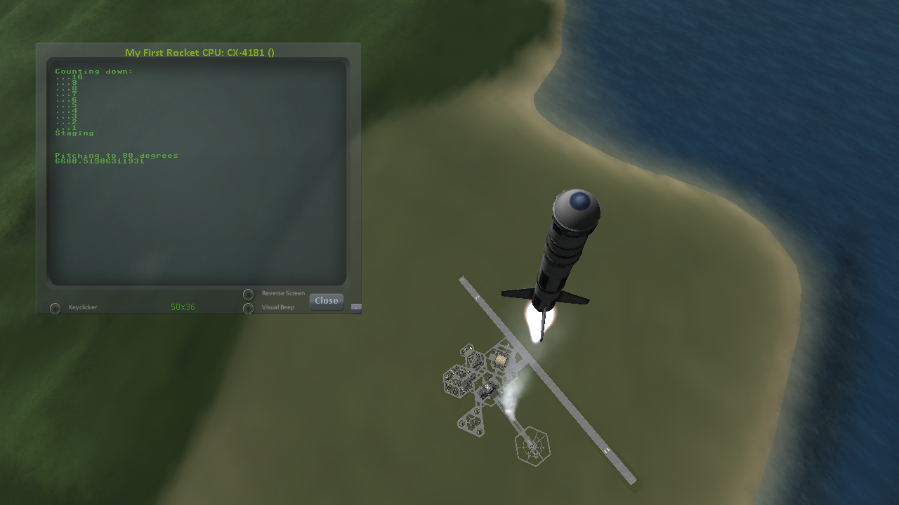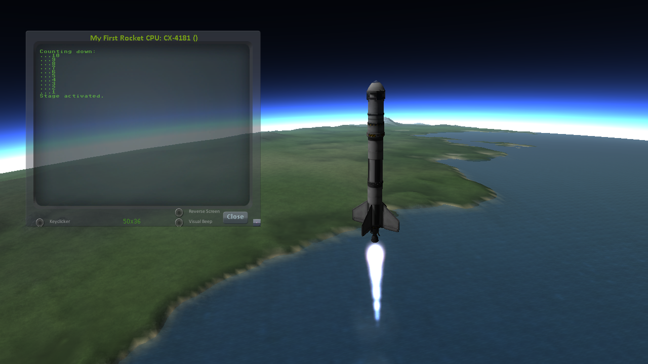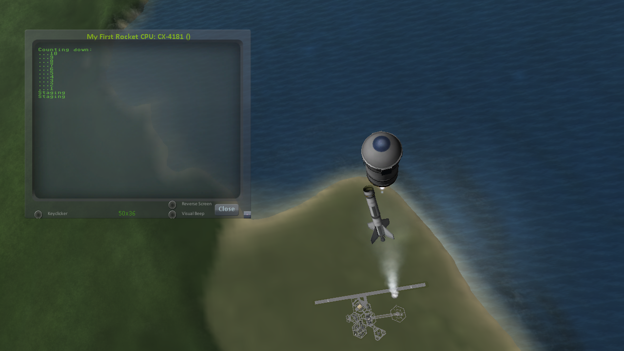Again, relaunch the ship, copy the script as before, and run it again. This time you should see it activate your later upper stages correctly.
